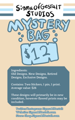 Love surprises? This Mystery Sticker Grab Bag is the perfect way to snag a mix of fun, high-quality stickers at an unbeatable price! Each bag contains 10 unique stickers, pulled from my full collection—including retired designs, oopsies (minor misprints), and current stock.